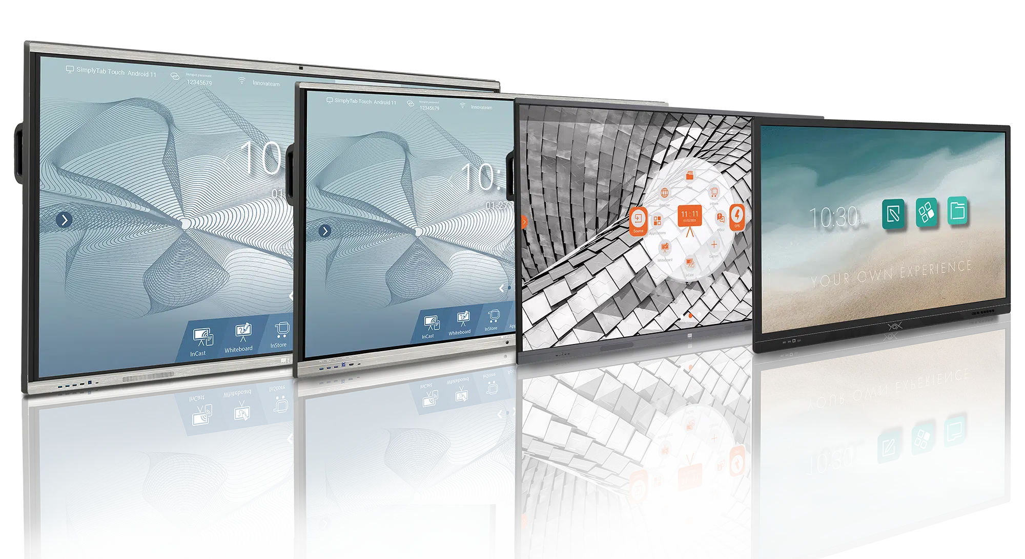 Tableaux interactifs : Destinés aux salles de réunion et d’enseignement, ils favorisent le travail en équipe et l’interactivité.